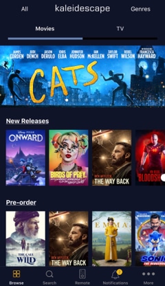 The mobile app provides a convenient way to purchase movies wherever you are. The main screen features dozens of curated movie collections, assembled by our movie experts, and the search tab provides a quick way to find the exact title, actor, or collection you’re looking for. As your movie night approaches, you can share movie options with friends via our mobile app’s “Share” feature.