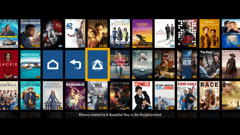 It’s easy to browse related movies by using the “Pivot” feature or navigating through the “Explore” menu, both shown below. To access the “Pivot” icon: pause on a movie cover, and after the blue synopsis flyout appears, press the left arrow on your remote. The synopsis will change into the icon menu shown below.