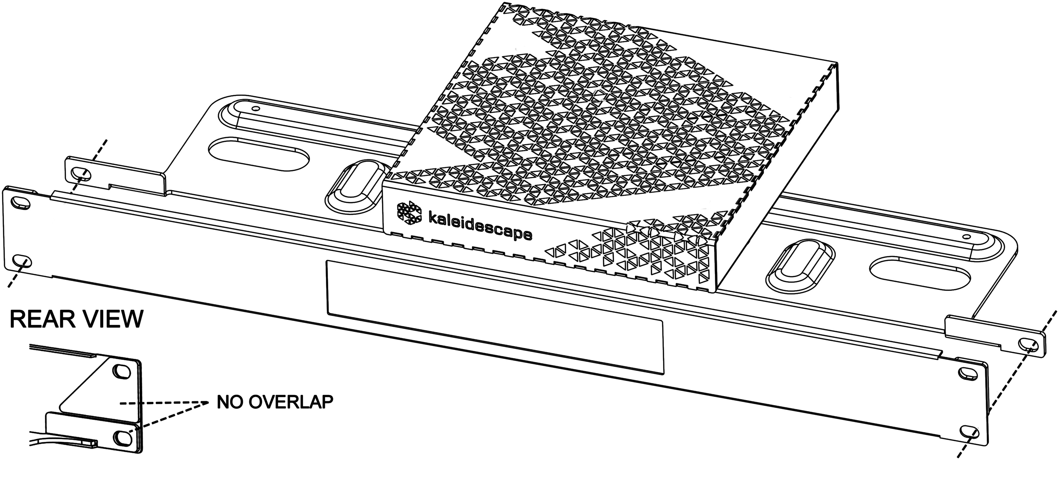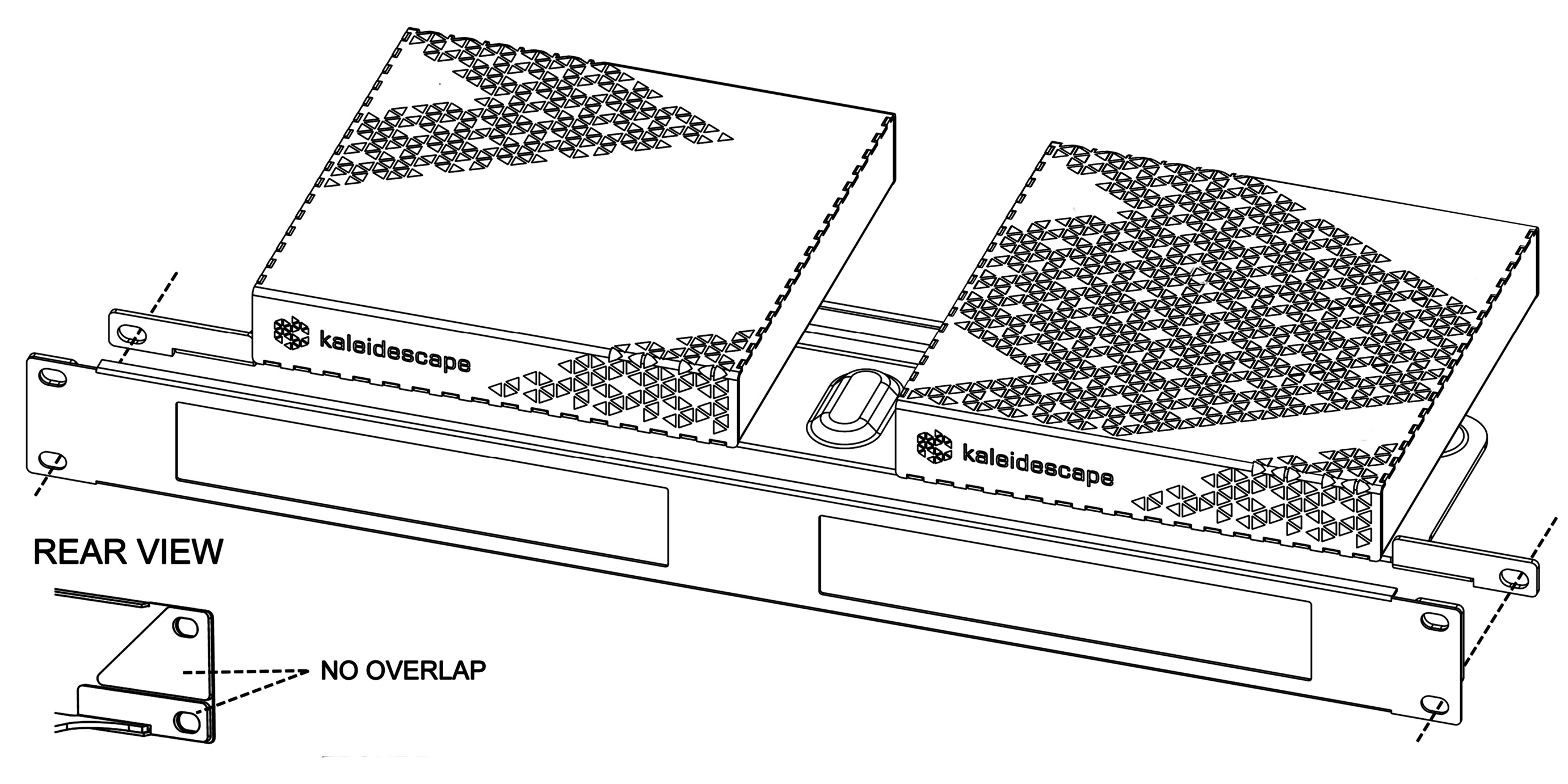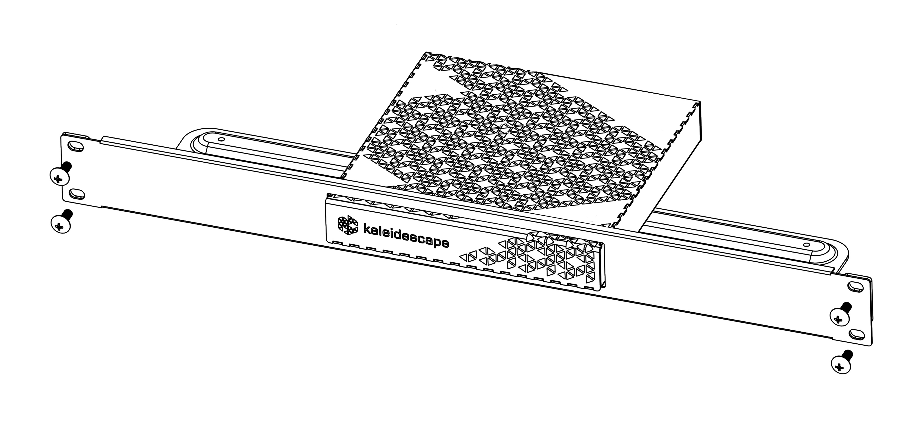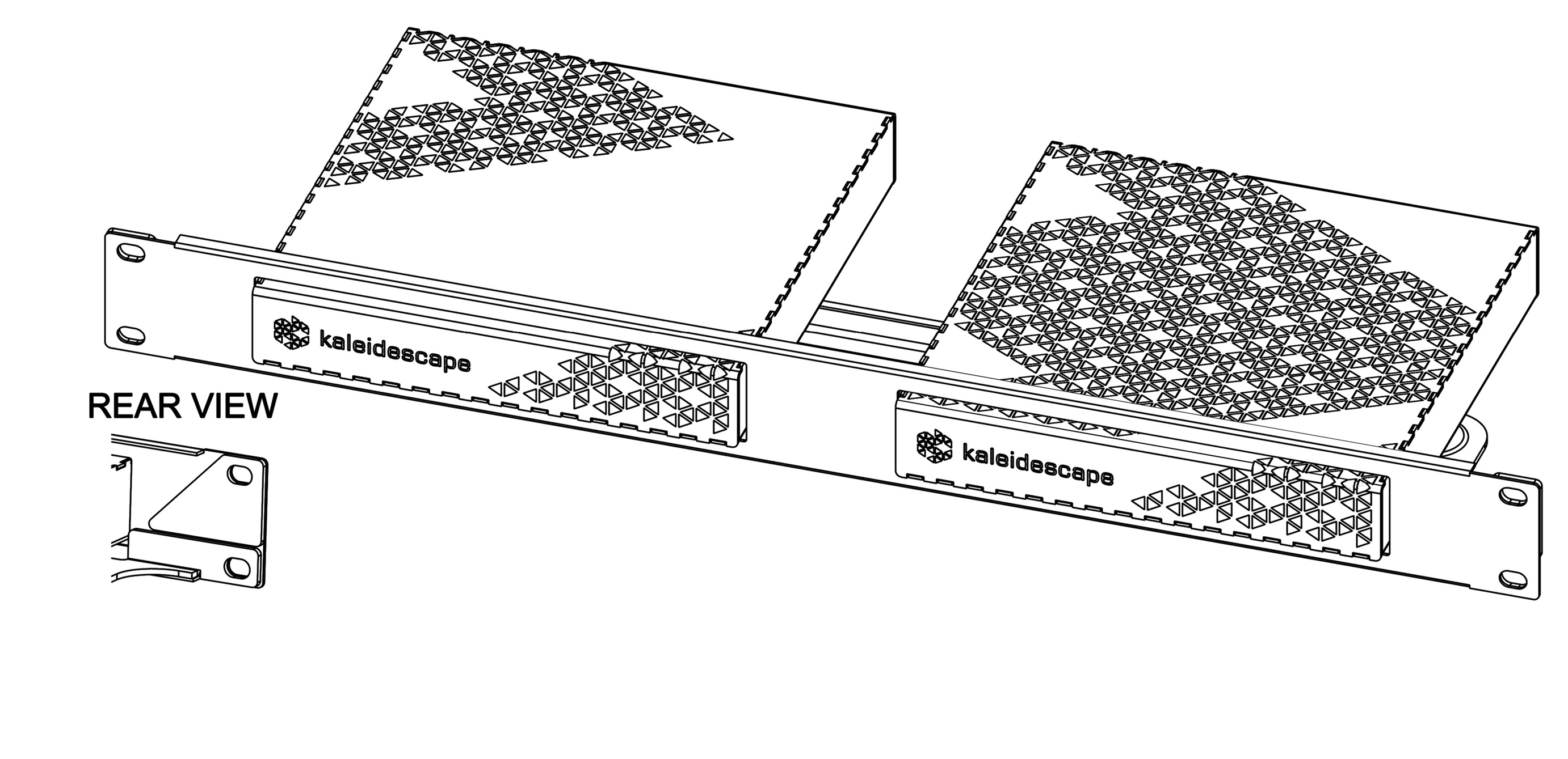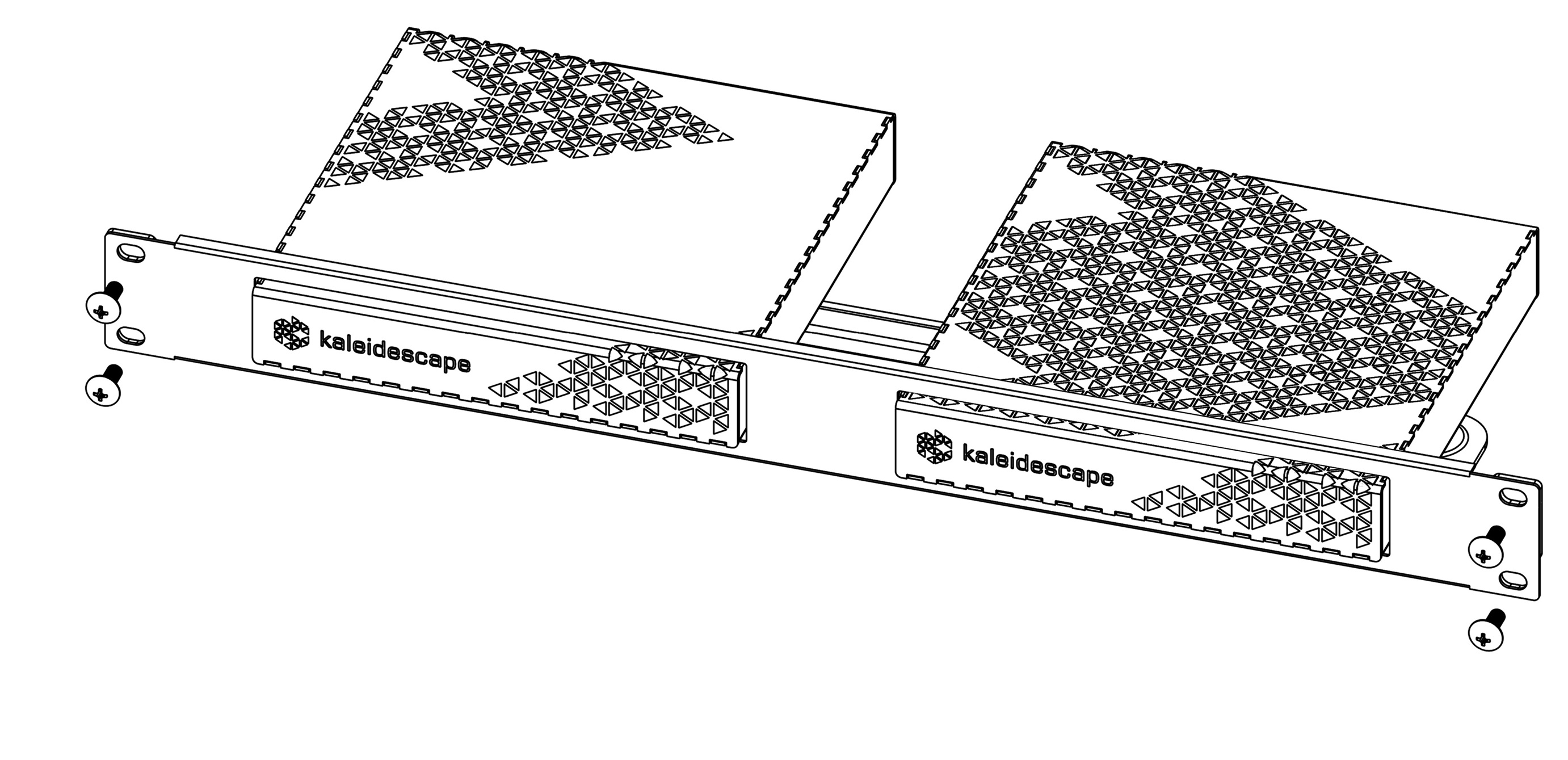 Installing Mini Terra Prime in a rack requires a rack-mount kit (KMOUNT-MINI), sold separately. One or two mini units — including Mini Terra Prime, Strato E, and Strato M — can be installed in one rack unit of space. The rack-mount kit includes the parts necessary for single or dual installation.