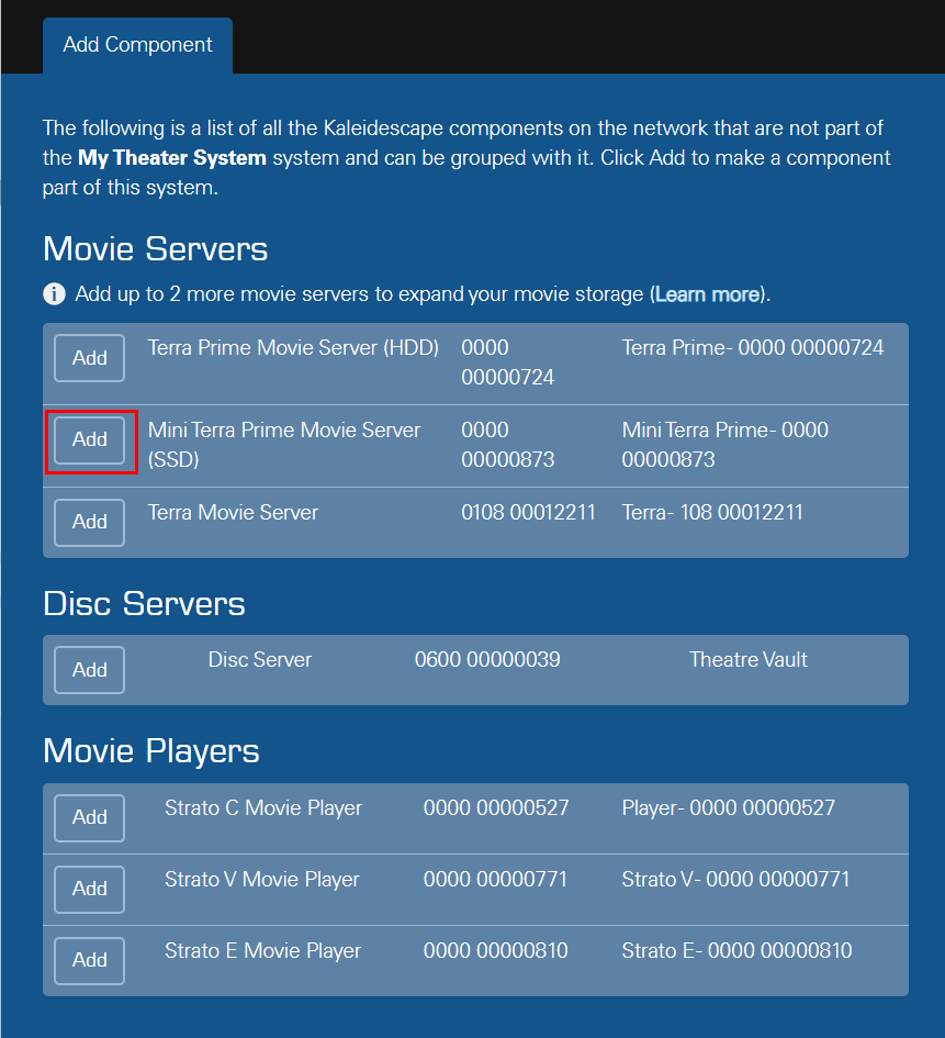 All Kaleidescape components must be connected to the same local network to be grouped into the same system.