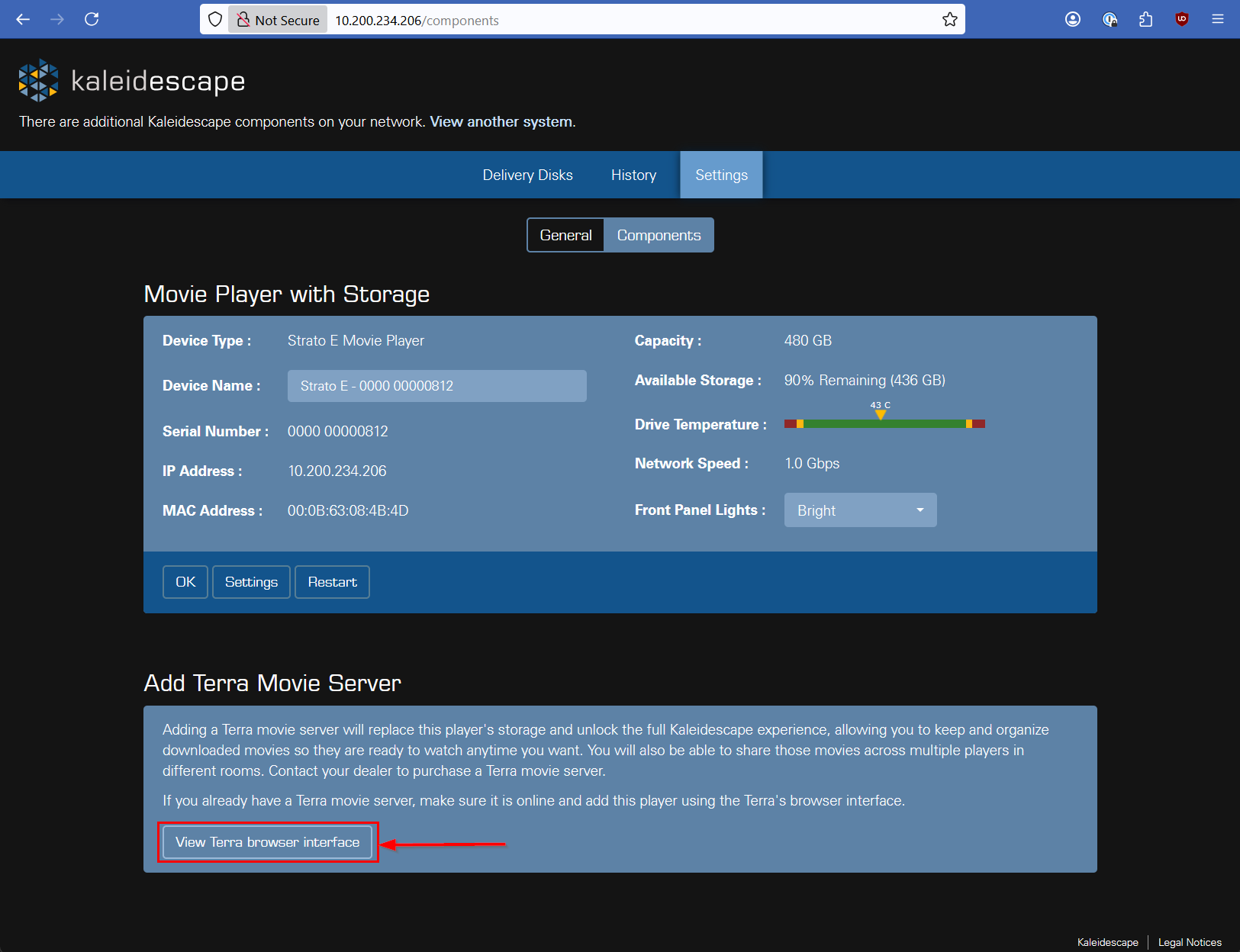 To group the Terra movie server with the Strato E click the View Terra browser interface button at the bottom of the page: