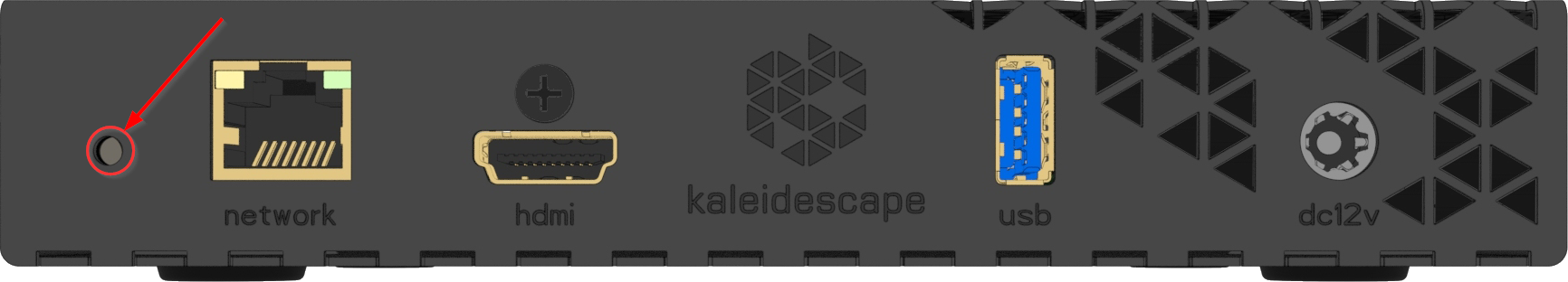 If you do not see the Kaleidescape logo and the setup menu, first check that Strato E has power. Check the AC adapter’s connection; the green LED on the adapter should be lit and make sure that the internal LED inside the player’s case is glowing. If it is not, try pressing the power button on the Kaleidescape mobile app remote or an IR remote control (available as an optional purchase).