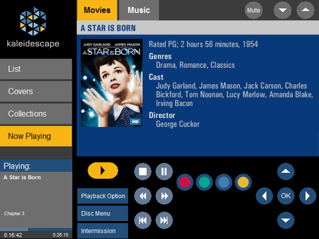 The Kaleidescape mobile app provides a rich experience for selecting and purchasing movies, and controlling the playback of feature films, concerts and TV shows.